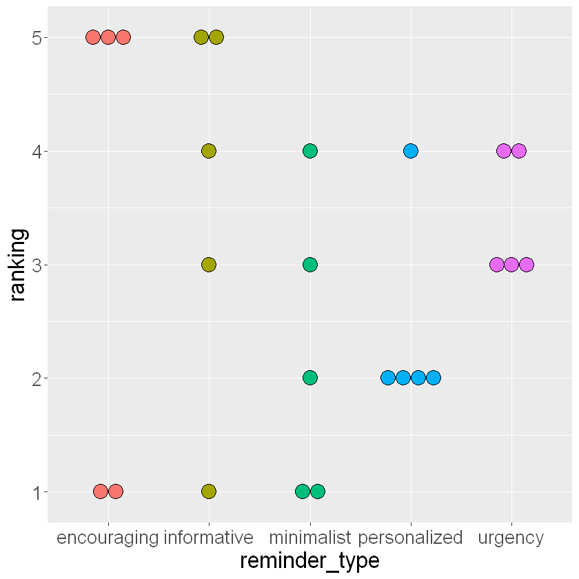 Results of asking participants to rank the reminders from worst to best, 1 being worst, 5 being best.