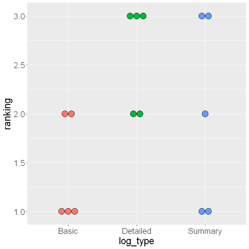Results of asking participants to rank the log types from worst to best, 1 being worst, 3 being best.