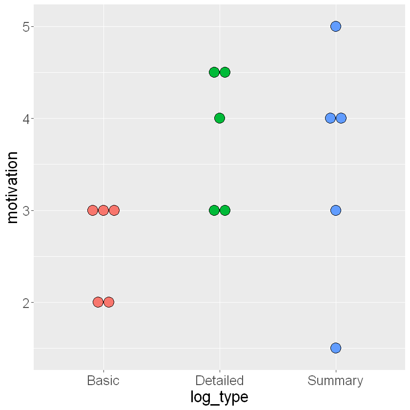 H2: Summary distraction logs will lead to higher motivation to change routine behaviors compared to Basic and Detailed logs.